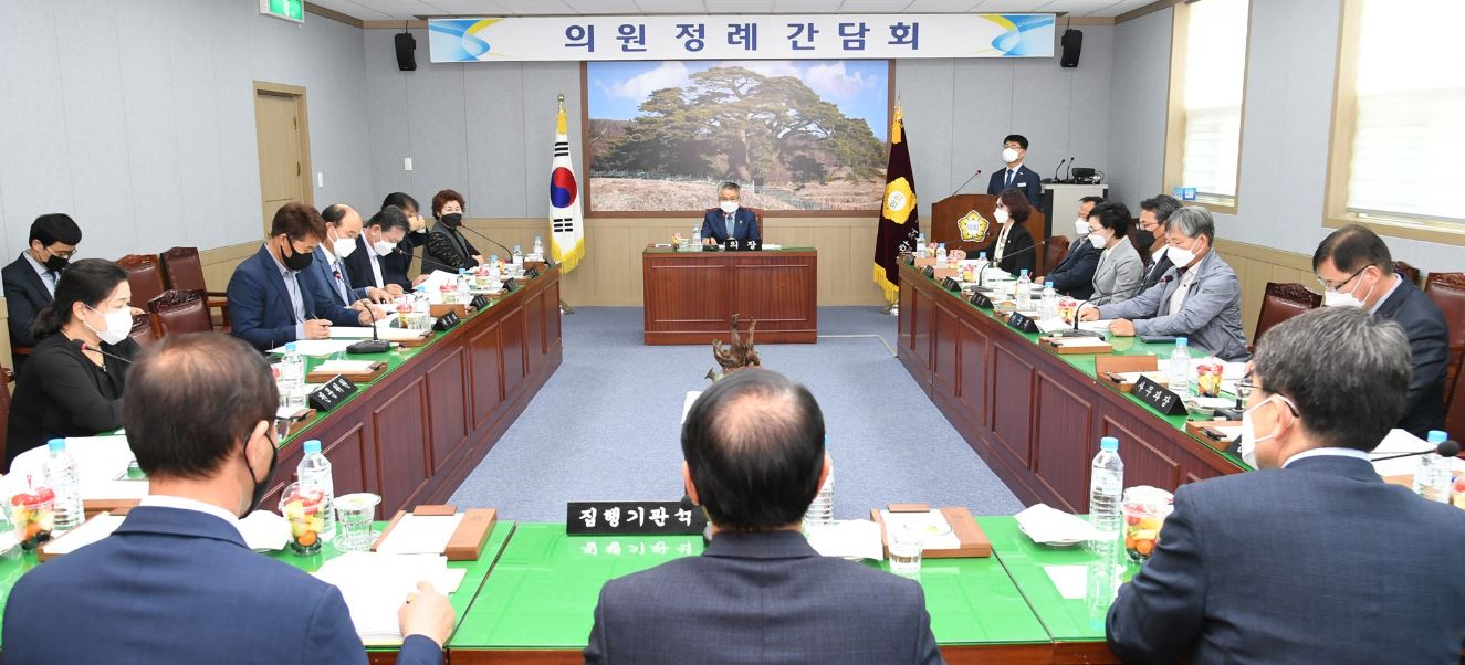 오후에는 군 기획예산실장을 비롯한 관련부서장이 참석한 가운데 의원 정례간담회를 개최하여 그동안 군정 주요사업에 대한 전반적인 보고를 청취했다.