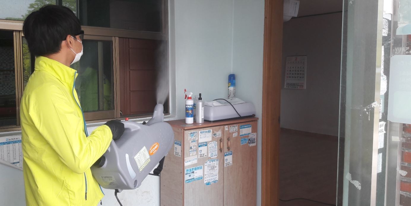 거창군 좋은이웃들, 경로당 운영 재개 방역봉사 실시코로나19로 운영 중단된 마리면 36개소 경로당 방역박권목 기자 / |
