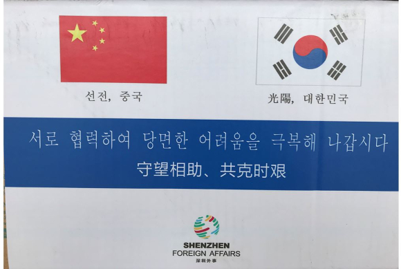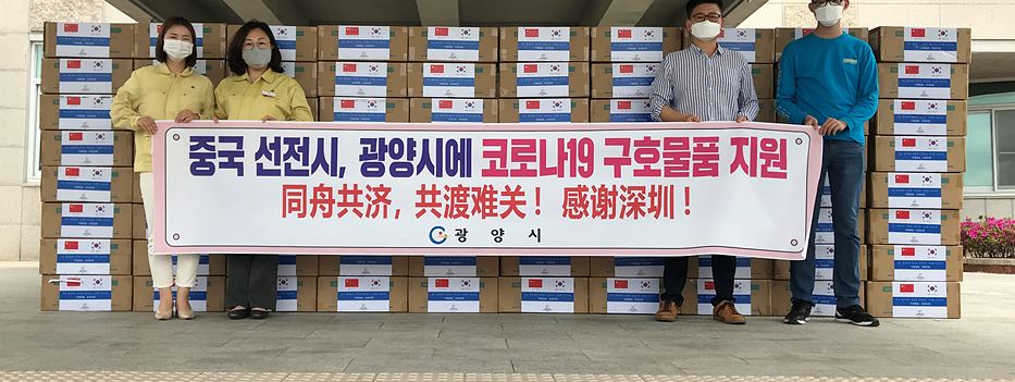 중국 선전(深圳)시, 광양시에 마스크 8만 장 추가 지원- 학생들의 등교 개학에 대비, 학교 관련 시설 우선 지원 예정 -정유근 기자 / |