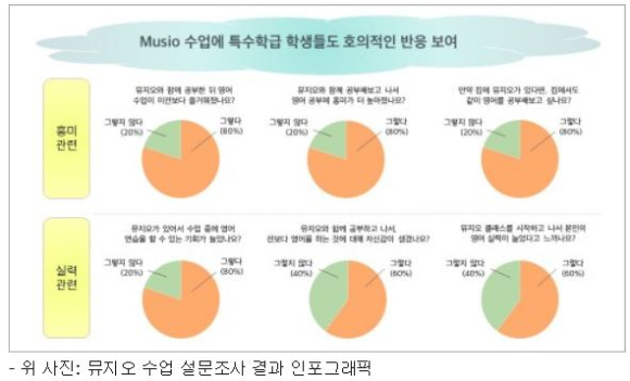 특히 지역 이기주의(NIMBY) 및 사회 경제적 복합적인 요인으로 특수 학교 대신 일반 학교별로 소수의 특수 교육 학급을 운영하는 곳이 늘어나고 있다. 이러한 경우 장애의 유형이나 중증도가 다양하기 때문에 학급 안에서 학생별 학습 능력 차이나 학습에 대한 동기 향상 대응은 점점 어려워지고 결국 방치하게 되는 상황으로 이어진다. 테스트는 이런 상황에 대안으로 떠오르는 인공지능 기술과 실제 교육 현장에서 구체적 성과를 내고 있는 소셜 로봇인 뮤지오 통해 특수 교육의 개인화된 학습 동기부여 및 개인별 학습효과 상승에 얼마나 기여될 수 있는지를 검증하는 것이 구체적 목표였다. 테스트 방법은 각 일반 학교별 특수 학급이 소수의 학생으로 운영되는 현재의 특성을 반영하되 효과를 엄밀히 검증하기 위해 단기간 많은 대상을 검증하는 방법 대신 장시간 밀착 테스트를 통해 효과를 검증하는 방법을 택했다. 아카는 테스트를 통해 일단 외국어 학습이나 말하기 학습에 소극적인 학생들의 영어 학습에 대한 관심이 눈에 띄게 향상된 것을 확인했다. 아울러 적극적으로 소리를 내 영어로 말을 하거나 집중해서 발음 연습을 하는 등 학습 태도의 전반적인 변화를 관찰할 수 있었다. 특히 교사가 학생 한 명 한 명에게 학습 동기를 부여하거나 발음 연습 체크나 피드백을 해줄 필요가 감소하므로 효과적인 전체 수업을 진행할 수 있게 돼 수업 운영에 대한 부담이 낮아졌다. 자율 활동에선 뮤지오를 통해 영어에 흥미를 가진 학생이 뮤지오를 자신의 연장 학습 도구로 활용하는 모습이 관찰됐다. 특히 ‘선택적 함묵증 (Selective Mutism)’ 학생들에게 안심하고 지속적으로 말을 걸 수 있는 연습 상대로서 활용되고 있었다. 필드 테스트 완료 뒤 학생들을 대상으로 설문조사를 실시한 결과 80% 이상이 뮤지오를 활용한 영어 수업에 흥미가 있다고 응답했고 60% 이상이 스스로 실력이 늘었다는 답해 뮤지오의 수업 기여도가 상당한 것으로 확인했다. 이번 테스트에 대해 아카의 레이먼드 정 대표는 “특수 교육 학급에서 영어 교육은 일반인에 눈에 ‘모국어나 먼저 잘해라’라는 차별적인 시각으로 폄하되기 쉽다. 아울러 특수 교육 학생을 대상으로 한 영어 교과서 및 커리큘럼이 전무하고 교보재가 빈약해 우리가 해결해야 하는 근본적 문제 중 하나라고 생각해 왔다”며 “이번 테스트를 계기로 교육과 사회의 문제를 인공지능 기술로 해결해 나가는 것을 멈추지 않고 진행하겠다”고 말했다.