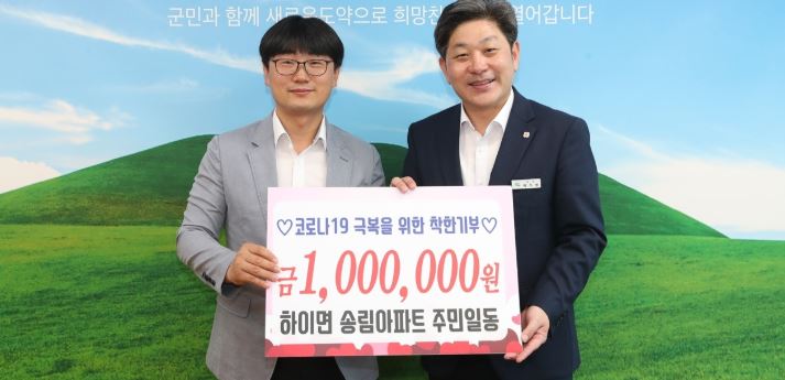 코로나19 극복을 위한 고성군 착한기부 릴레이_ 하이면 송림아파트 주민일동, 성금 100만원 전달정유근 기자 / |