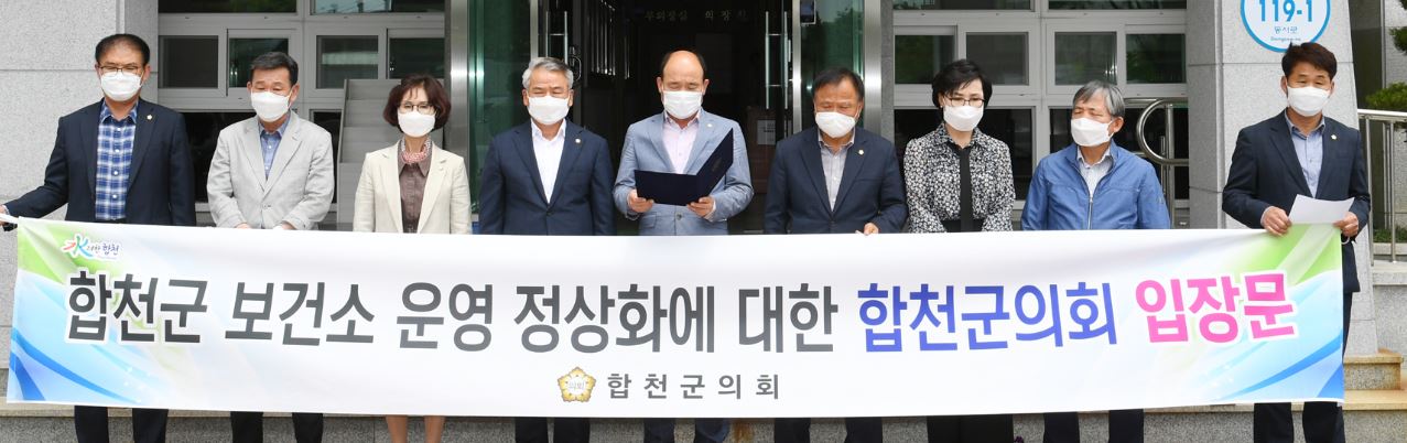 올해초부터 전 국민이 코로나-19로 인해 비상상황을 겪고 있고 현재도 사회적 거리두기 및 생활속 거리두기운동으로 전염병 종식을 위해 최선을 다 하고 있는 상황에서 합천군 방역의 최전선 부서인 보건소가 내부 갈등으로 진통을 겪고 있어 군의회가 합천군의 조기 해결을 촉구하며 성명을 냈다.