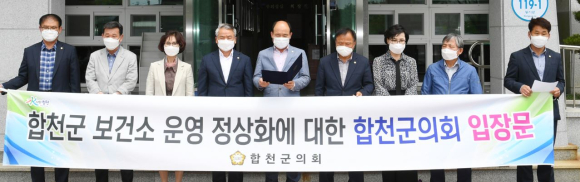합천군의회(의장 석만진)는 2일 오후 1시반 군의회 앞에서 ‘합천군 보건소 운영정상화에 대한 합천군의회 입장문’이란 제하의 성명서를 발표했다.