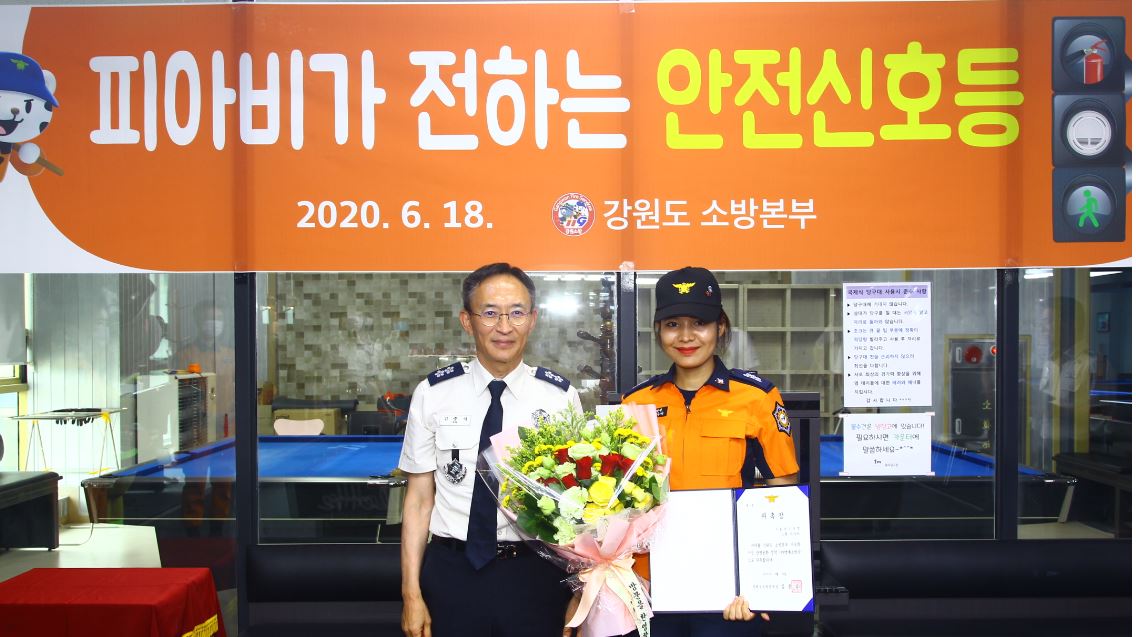 강원도 소방본부(본부장 김충식)가“당구여제 피아비와 함께 다문화 가정 안전문화 정착을 위한 홍보영상을 7. 2.(금) 10:00 강원도 유트브와 소방본부·소방서 SNS에 업로드(제공)한다.”고 1일 밝혔다.