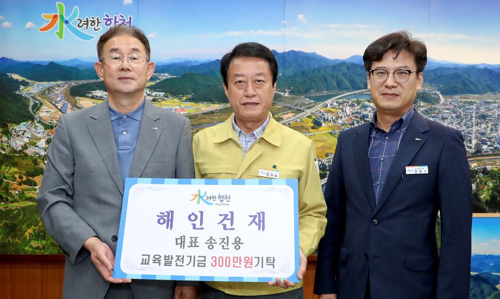 해인건재 송진용 대표 교육발전기금 300만원 기탁박권목 기자 / |