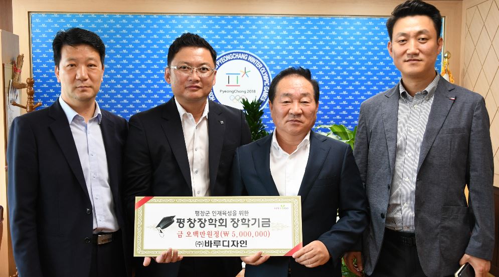 ㈜바루디자인‧평창군청 김춘호 주무관, 평창장학회에 장학금 기탁정민권 기자 / |