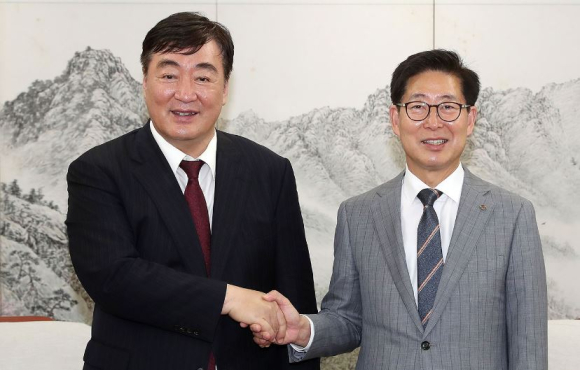 양승조 지사는 10일 도청 접견실에서 싱하이밍 주한중국대사를 만나 환담을 갖고, 도와 중국 정부와의 경제·관광 교류·협력 증진 방안을 논의했다.