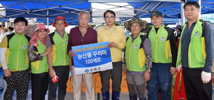 장충남 남해군수, 수해 입은 하동군 구례군 위문 방문농특산물 꾸러미 위문품 전달하며 수해복구 격려정민권 기자 / |