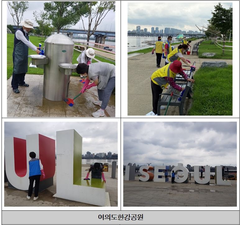 | 일부가 침수된 공원에서는 운동기구 등 시민이용시설 닦기와 그 외 일손 돕기 활동을, 완전 침수된 공원에서는 나무에 걸린 쓰레기 수거, 강변 계단 등의 흙 청소, 쓰러진 나무 세우기 등의 활동을 진행할 예정이다.