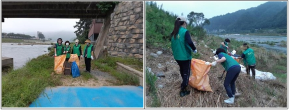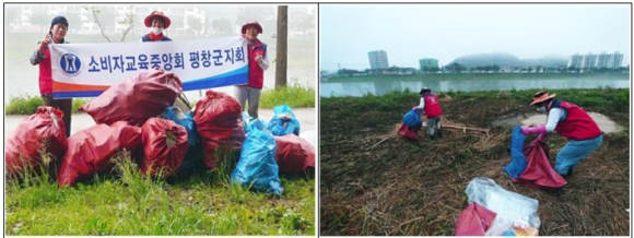....................................【미 담 사 례】..................................... □ 소비자교육중앙회 평창군지회, 평창강 쓰레기 수거 봉사활동 ○ 지난(8. 20.) 새벽 소비자교육중앙회 평창군지회(회장 김정희) 회원 5명은 평창강 일대에서 집중호우 이후 흘러 내려온 쓰레기를 수거하는 등 봉사활동을 실시.