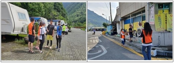 | □ 미탄면여성의용소방대, 관광객 대상 모기 기피제 나눔 활동 ○ 최근 미탄면여성의용소방대(대장 문성이) 회원 15명은 마하생태관광지와 시가지를 중심으로 미탄면을 방문한 관광객에게 쓰레기 처리방법 안내 및 모기 기피제를 배부하여 “클린 미탄” 만들기 활동을 이어감.
