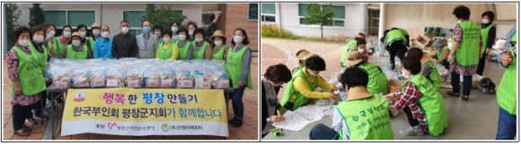 | □ (사)한국부인회, 평창군 택시와 버스 기사에 응원키트 전달 ○ 어제(9.24.) (사)한국부인회(회장 김복준)는 평창군 택시(법인/개인)와 시내버스 운전기사 140명에게 응원키트(마스크, 비타민, 에너지바, 음료 등)를 전달하고 코로나19로 어려운 상황이지만 힘내시고 안전 운행하시라며 응원하였음. ○ 이 활동은 지난해 한국부인회가 지난해 받았던 자원봉사상 상금과 건원EFT(대표 이화진)의 후원금, 서태일 전 평창군새마을회장의 마스크 후원으로 진행되었음.