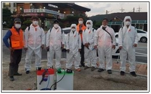 | □ 용평면 의용소방대 장평5일장 및 주변 일대 방역 및 소독 ○ 어제(9.24.) 용평면 의용소방대(소방대장 김정기) 10여명은 코로나19 확산 방지를 위해 장평5일장과 그 주변 일대방역 및 소독작업을 완료함.