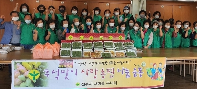 새마을부녀회, 소외계층에 송편·차례음식 전달- 전주시 새마을부녀회, 28일 소외계층 200세대에 직접 만든 송편, 차례 음식 전달정호 기자 /