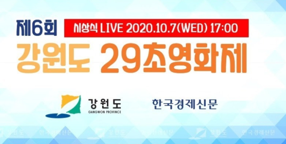 강원도와 한국경제신문이 함께 주최하는 「제6회 강원도 29초 영화제 시상식」이 10. 7(수), 17:00부터, 유투브 ‘강원도 29초 영화제’를 통해 온라인으로 참여자들과 소통하는 방식으로 개최된다.
