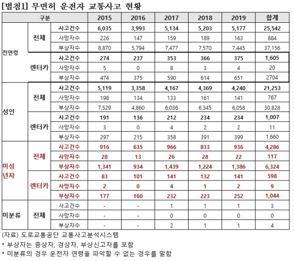 허영 의원, 미성년 무면허 운전자 렌터카 사고 69% 이상 폭증!- 무면허 렌터카 사고 점점 늘어, 미성년자 사상자 5년간 무려 1,053명정민권 기자 / |