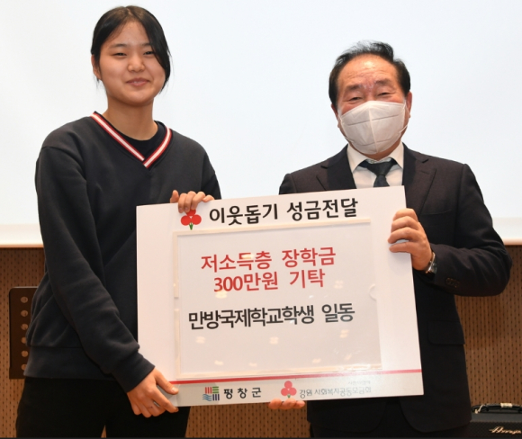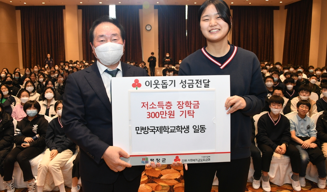 만방국제학교, 평창군 저소득층에 장학금 300만원 기탁정민권 기자 / |