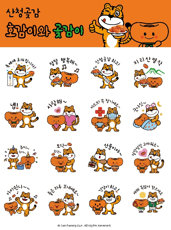 산청곶감을 널리 알리기 위해 제작한 카카오톡 이모티콘 ‘호감이와 곶감이’가 2차 무료 배포된다. 군은 오는 26일 오후 2시부터 카카오톡 ‘지리산산청곶감’ 채널을 통해 1만9200명에게 이모티콘을 무료배포 한다고 24일 밝혔다. ‘호감이와 곶감이’는 카카오톡에서 ‘지리산산청곶감’ 채널을 친구 추가하면 누구나 무료로 다운로드 받을 수 있다. 다운로드 후 카카오톡에서 90일간 사용할 수 있다. 군은 지난 16일 산청곶감 홍보용 카카오톡 이모티콘인 ‘호감이와 곶감이’를 배포했다. 선착순 1만 9200명에게 제공한 이모티콘이 2시간만에 조기 소진되는 등 큰 관심을 받았다.