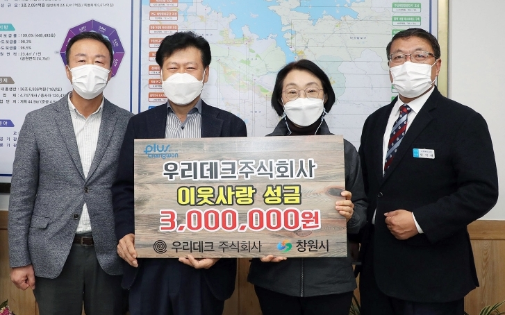 ㈜우리데크, 창원시에 연말 이웃돕기 성금 300만원 기탁김철상 기자 / |