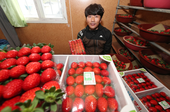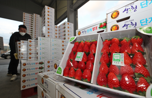 새콤달콤 산청 딸기 ‘메가마트’서 만나요오는 22일까지 동래·남천·김해·울산서 특판행사김철상 기자 / |