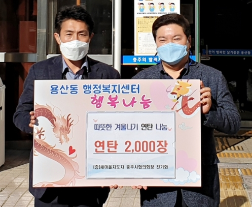 진기화 새마을지도자 충주시협의회장, 사랑의 연탄 기부- 어려운 이웃 위한 연탄 2,000장 용산동행정복지센터에 기탁 -김철상 기자 / |