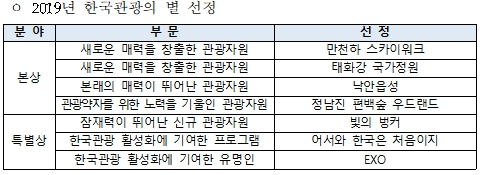 <2020 한국관광의 별 선정 결과>
