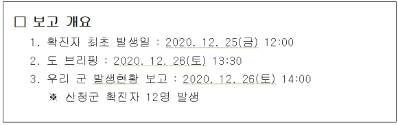 산청군 코로나19 확진자 발생 현황 보고
