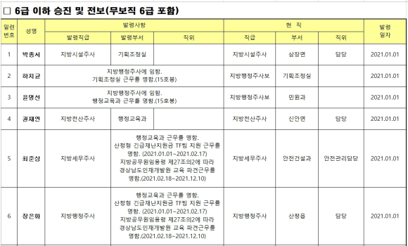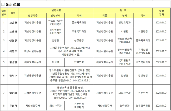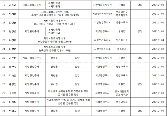 산청군 연말 정기인사 발령김철상 기자 /