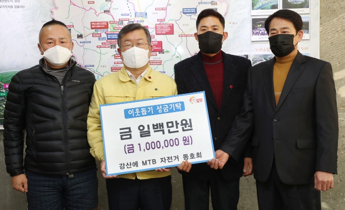 강산애 MTB 자전거 동우회 사랑의 성금 기탁- 성금 100만원 전달 -김철상 기자 / |