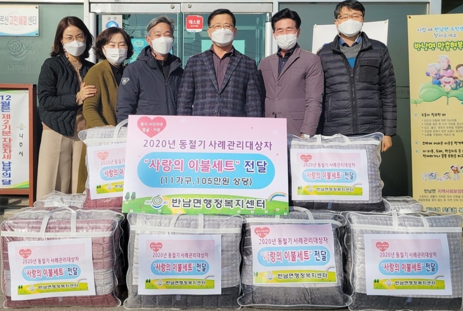 나주 반남면, 추위와 마음을 보듬는 사랑의 이불세트 지원 눈길통합사례관리 대상자 11가구에 극세사 이불세트 전달민관 협력 통한 복지사각지대 관리 지속 이광훈 기자 / |