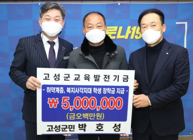 박호성 금강건설 이사, 고성군교육발전기금 기탁- 취약계층 학생들에게 희망장학금 전달식 가져정유근 기자 / |