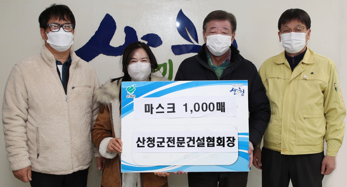 산청군전문건설업협의회, 취임식 대신 기부 실천군청 찾아 마스크 1000매 기탁김철상 기자 / |