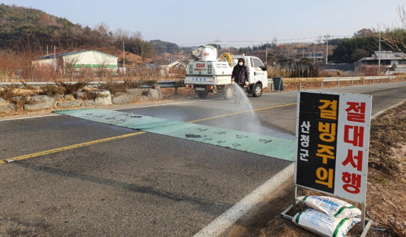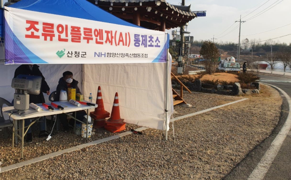 산청군 고병원성AI 유입방지 통제초소 운영접경지 단성면 관정리에 설치김철상 기자 / |