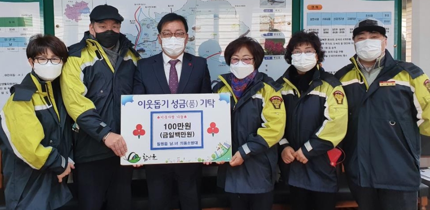 함안군 칠원읍남녀의용소방대, 이웃돕기 성금 100만 원 기탁김철상 기자 / |