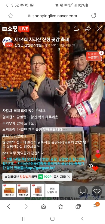 축제기간 중 두차례 진행된 라이브커머스 이벤트인 네이버 ‘쇼핑라이브’는 누적 시청자 3만6000명, 곶감선물세트 등 제품 10여분만에 매진 등을 기록했다.