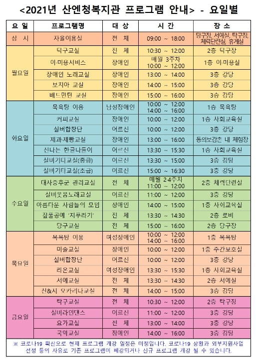 산엔청복지관 2021년 평생교육지원사업 참여자 모집60세 이상 노인·장애인이면 누구나 가능김철상 기자 / |