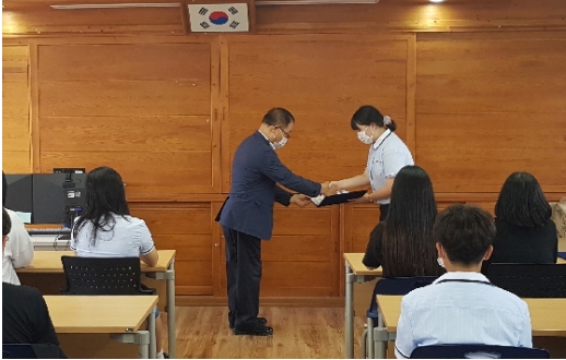| 이에 학생들은 감사의 마음을 담아 정성껏 손편지를 썼는데, 김○주 학생은 “지금은 중학생이나 나중에 성인이 되어 사회에 나가 타인에게 배려하고 도움을 줄 수 있는 사람이 되겠습니다”라고 말하면서 기부해주신 장학금이 목표와 꿈을 이루는 데 큰 도움이 될 것이라고 덧붙였다. 재학생인 이○천 학생은 “지금까지 잘했다는 의미보다 앞으로 잘하라는 뜻으로 알고 더욱 열심히 공부하겠습니다”라고 다부진 포부를 전하기도 했다.