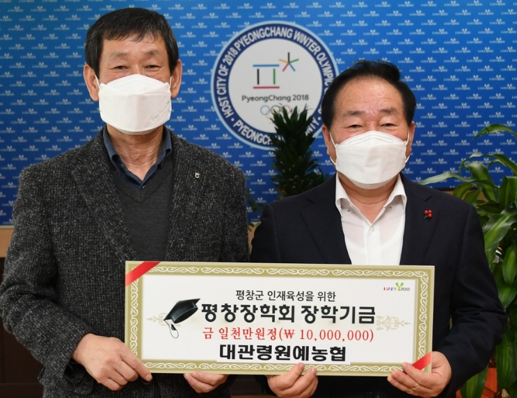 대관령원예농협, (재)평창장학회 장학금 1천만원 기탁정민권 기자 / |