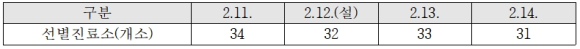 아울러, 코로나19 진단검사에 공백이 없도록 연휴기간 중 보건소 및 응급의료기관 등에서 선별진료소를 운영한다. < 설 연휴에 운영하는 선별진료소 수 >