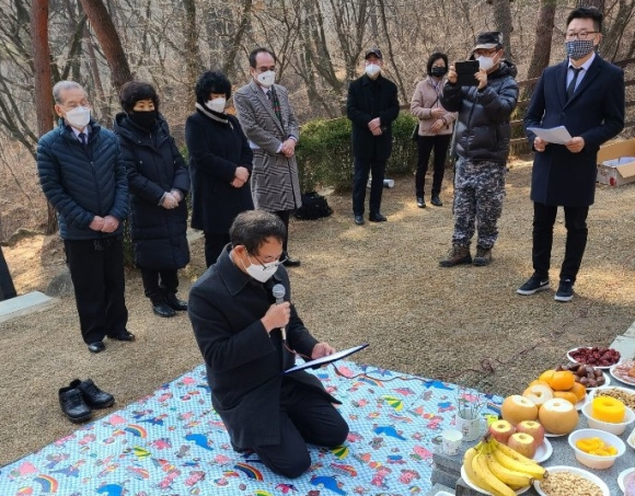 설날 다음날이었던 어제 토요일(양력 2월 13일, 음력 1월 2일) 오전 11시부터 서울 강북구 수유리 무후(無後)광복군 합동묘소에서 후손이 없어 무연고자(無緣故者)인 17위 선열에 대한 2021년 설날 추모행사가 열렸다.