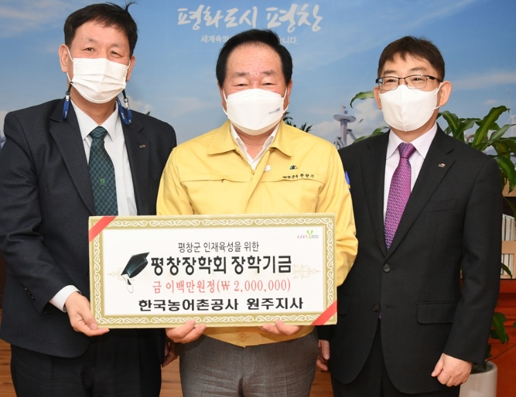 한국농어촌공사 원주지사, 평창장학회에 장학금 200만원 기탁정민권 기자 / |