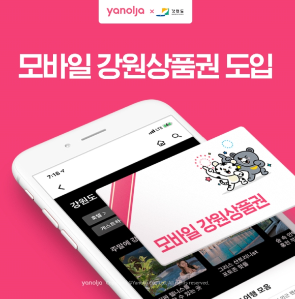 강원도는 모바일 강원상품권의 온라인 결제가 국내 최대 글로벌 여행 플랫폼인 야놀자에서 4월 1일부터 가능하다고 밝혔다. 모바일 강원상품권은 지난해 강원도내 소상공인을 지원하기 위해 출시한 지역 상품권으로 야놀자 내 강원도 소재 모바일 강원상품권 제휴 숙박시설 이용 시 결제 수단으로 사용이 가능해졌다. 이번 모바일 강원상품권 런칭 기념으로 4월 한달간 프로모션도 진행한다. 강원도 소재 모바일 강원상품권 제휴 숙박시설 이용 시 최대 50% 숙박할인 쿠폰을 제공한다. 또한 모바일 강원상품권은 구매 시 최대 10% 할인 혜택이 있다.