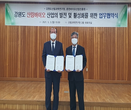 道 산림과학연구원, 춘천바이오사업진흥원과“강원도 산림바이오 산업의 발전 및 활성화”를 위한 업무협약 체결정민권 기자 / |