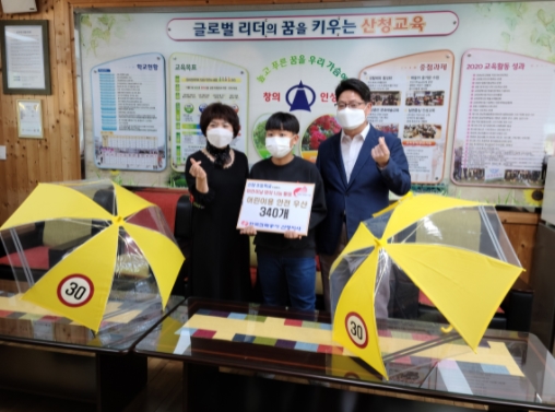 산청초, 어린이날 기념 우산 증정최정현 기자 /