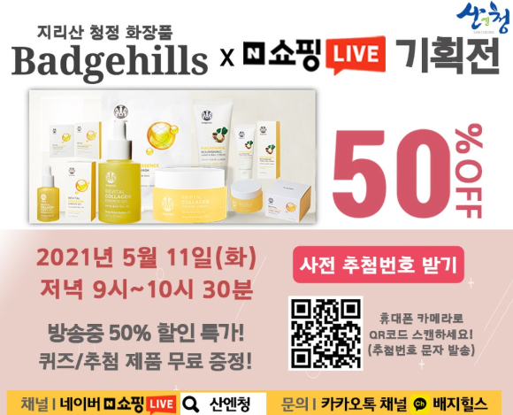 한방 오소리 오일 화장품 라이브커머스로 만나요산청군 11일 저녁 9시~10시30분 최대 50% 할인크림·에센스 등…자극 없는 천연유래 성분 함유 김철상 기자 / |
