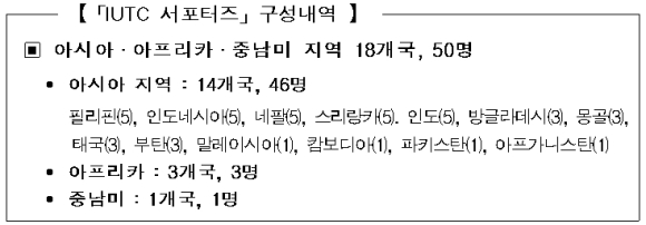 「IUTC 서포터즈」는 그간 국제도시훈련센터(IUTC)에서 국제연수 과정을 수료한 해외 고위 공무원 및 전문가들로 구성되었으며, 향후 2년간 강원도와 해당 국가 간 경제협력 및 우호교류의 가교역할을 담당하게 된다.