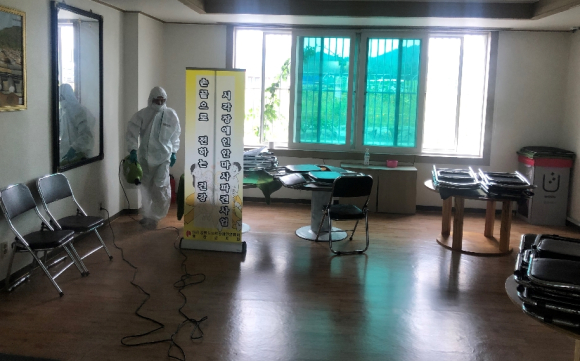 평창지역자활센터 소독방역사업단(K-디펜스) 소독방역활동 앞장서- 대관령면 노인회분회 소독・방역정민권 기자 / |