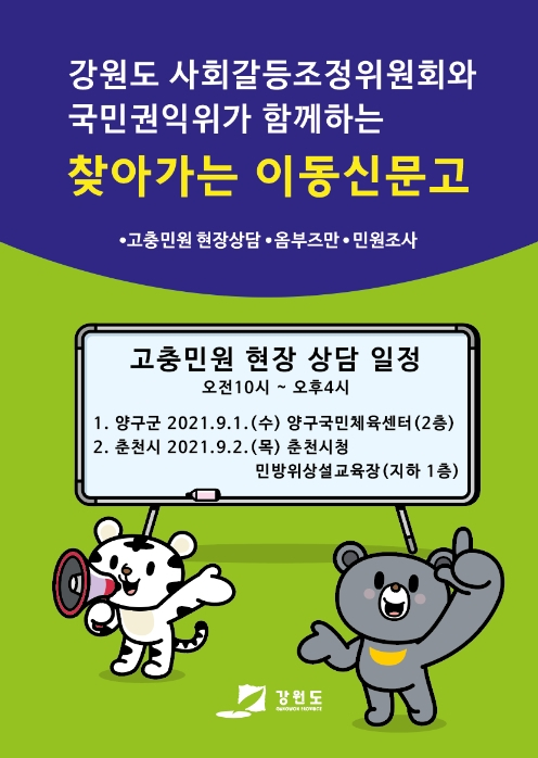 강원도 사회갈등조정위원회, 국민권익위와 ‘지역형 이동신문고’ 운영(고충민원 현장상담을 통해 도민권익 보호와 소통행정 실현)정민권 기자 / |