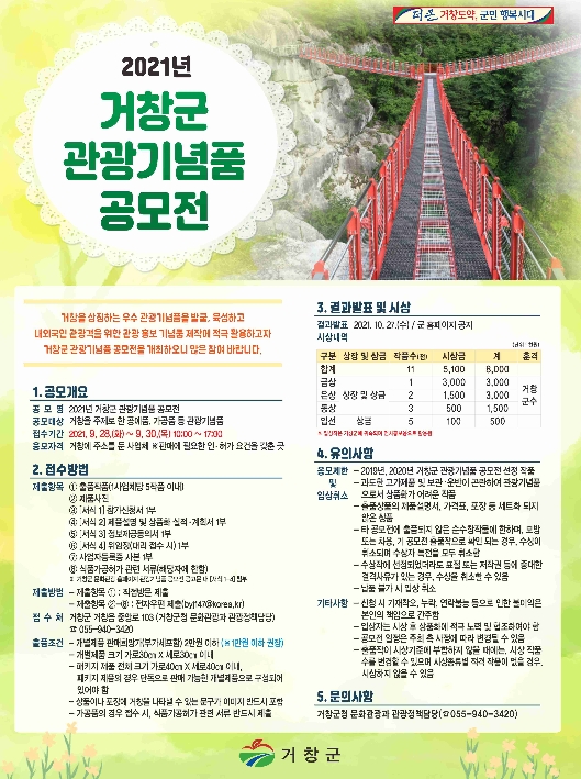 거창군, ‘2021년 거창 관광기념품 공모전’ 진행 9월 28일부터 30일까지 접수한용택 기자 / |