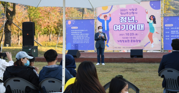 거창군은 지난 23일 거창창포원 문화광장에서 지역 청년단체 10개를 비롯해 구인모 거창군수, 거창군의회 표주숙, 김향란, 권순모 의원, 창포원을 찾은 청년과 아이들이 자유롭게 참여한 가운데 2021 거창군 청년주간행사 ‘청년, 여기어때’ 행사를 열었다.